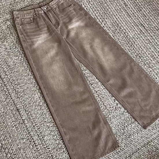 No. 210477 Vintage Style Washed Denim Straight-Leg Pants